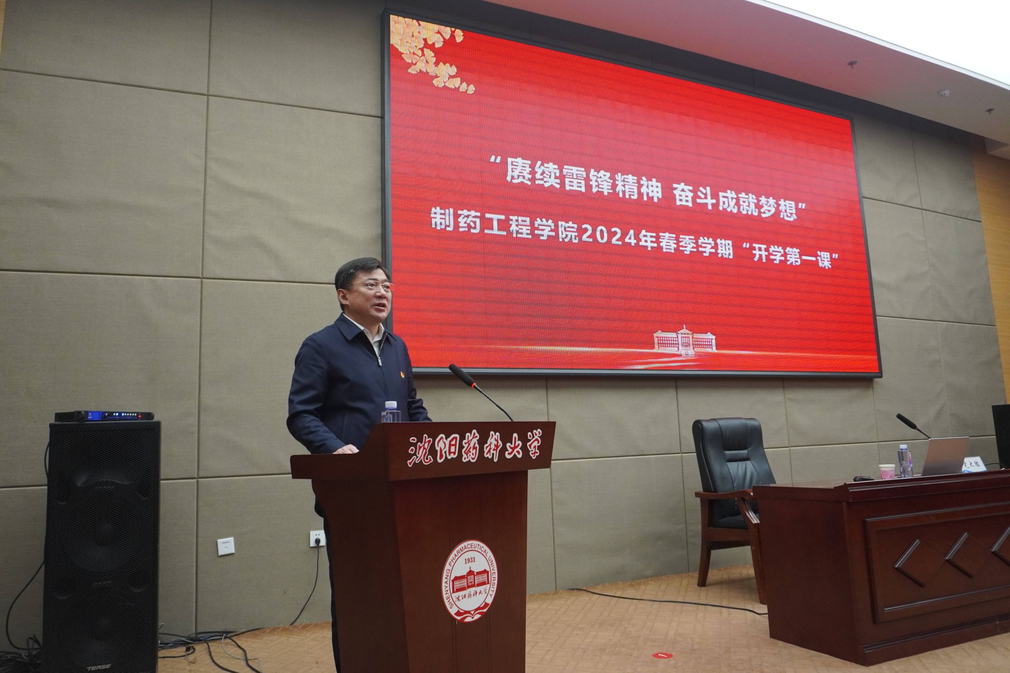 为贯彻党的教育方针,落实立德树人根本任务,引领学院师生弘扬雷锋精神,以昂扬的精神面貌奋进新学期,beat365平台唯一官网于3月7日在南校区图书馆国为学术报告厅举办了以“赓续雷锋精神 奋斗成就梦想”为主题的新学期“开学第一课”活动。本次活动邀请北部战区总医院临床药师党大胜为学院师生授课。校党委副书记关雪峰、学院领导班子成员、全体辅导员以及师生代表参加活动。