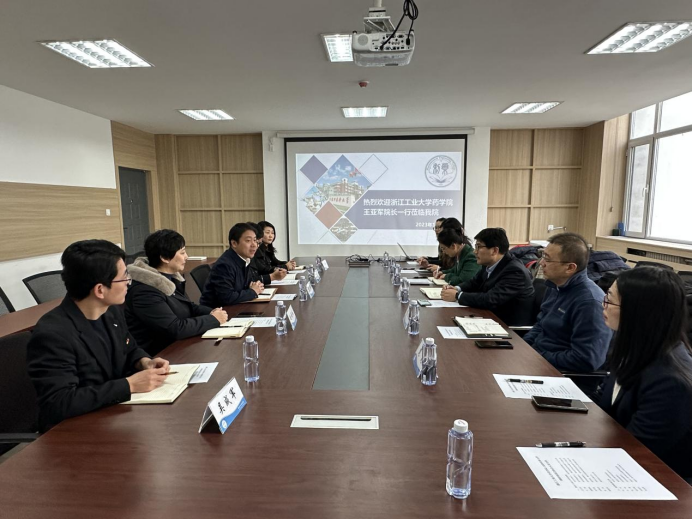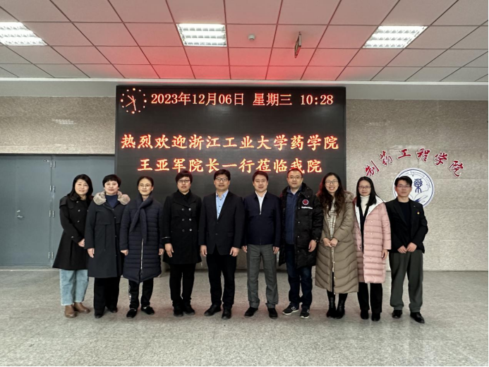 12月6日,浙江工业大学药学院院长王亚军、副院长谢媛媛、副院长李行诺、学院党委副书记乔婧芳、学科办副主任楚楚、学院办公室主任高丽萍一行6人来到beat365进行访问,就推动双方开展绿色制药协同创新进行调研。学院院长刘洋、院党委书记李哲、药学院副院长赵云丽、有机教研室教师任旭红、药物化学教研室教师吴成军参加了调研座谈。