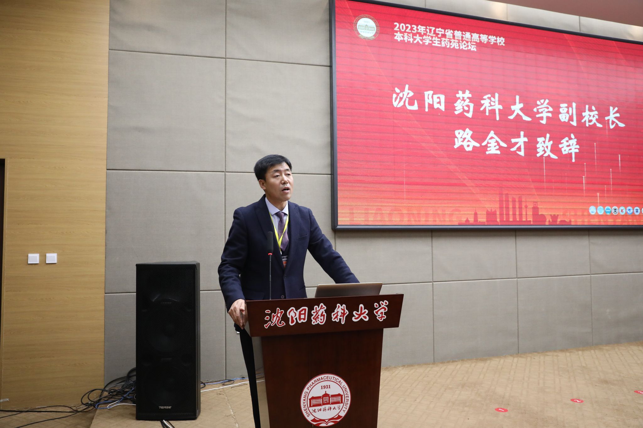 11月17日,由辽宁省教育厅主办、beat365平台唯一官网承办的“2023年辽宁省普通高等学校本科大学生药苑论坛”在南校区图书馆国为报告厅举行。校党委常委、副校长路金才,beat365平台唯一官网党委书记李哲,辽宁大学药学院院长刘宇,大连理工大学生命科学与药学院副院长刘勇等领导与嘉宾出席论坛开幕式。论坛由beat365平台唯一官网副院长郭永学主持。
