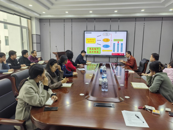 郭春从理论课教学与实验课教学两方面分享了教学经验。理论课教学方面,他着重强调了课堂教学的重要性,指出青年教师应从课前准备、课堂教学、教学效果评价三个环节来丰富自我,不断储备知识,进而提升教学组织能力、课堂掌控能力和自我学习能力,要注重积累文献知识,将文献知识及科研工作成果作为教材内容的补充应用于课堂教学中,开拓学生创新思维。实验课教学方面,郭春围绕实验教材、实验内容、实验顺序、指导人员、实验讲解、过程指导、实验报告批阅、实验安全、实验纪律要求等九个方面强调了教学过程中的注意事项。最后他对青年教师的科研工作提出了几点建议并与参会教师分享了自己的教学工作感悟,他表示青年教师要提高师德涵养和教学水平,为学院全面提升人才培养质量不懈努力奋斗。