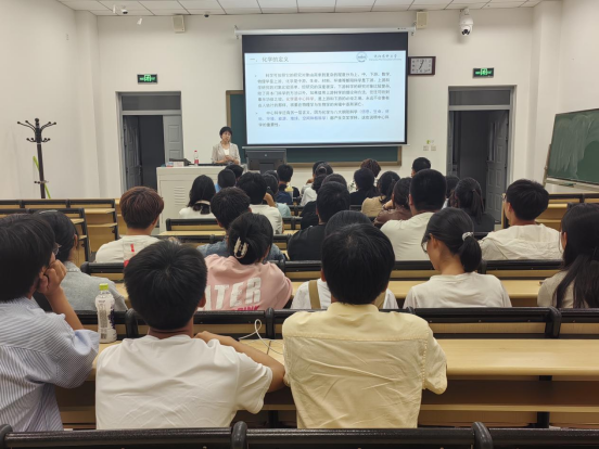 制药工程专业负责人刘丹教授、药物化学专业负责人刘洋教授、环境科学专业负责人张聪璐副教授、应用化学专业负责人刘晓平副教授分别为学院四个本科专业学生作专业教育,环境科学专业班导师礼彤副教授和梁宁副教授参加了环境科学专业教育会。四位专业负责人详细介绍了各专业的历史及现状、人才培养目标及学生未来的发展方向,强调了大学阶段是人生的关键时期,学做人、学知识是大学生的第一要务,希望同学们不负韶华,奋力前行。