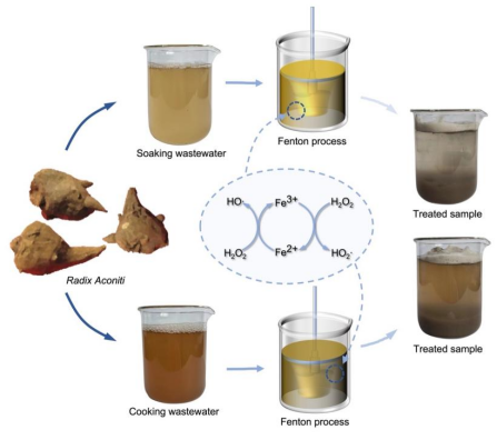 综上所述,课题组探索了芬顿法对川乌炮制废水的处理效果,研究表明,芬顿法可以有效地去除川乌炮制废水中的毒性物质生物碱。该研究证明AOP在处理毒性中药废水方面具有巨大的潜力。