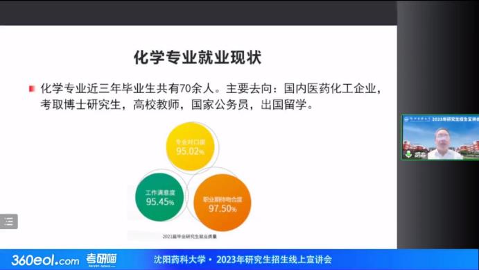 胡春教授为考生介绍了化学学科教学科研团队、学科内各研究方向、招生导师以及成果转化情况,阐明了化学学科作为beat365药学优势学科的支撑和基础,同时又区别于其他高校化学学科独具特色的建设现状,同时分析了近年来化学学科招生就业情况,为各位考生提供了清晰的报考思路。