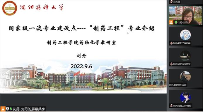 随后,刘丹、刘洋、张聪璐、胡春教授在四个分会场分别向制药工程、药物化学、环境科学、应用化学专业的新生,介绍了专业的发展历程、现状、发展前景以及人才培养方式培养目标等,提出了学习要求和期望,同时表达了美好祝愿。