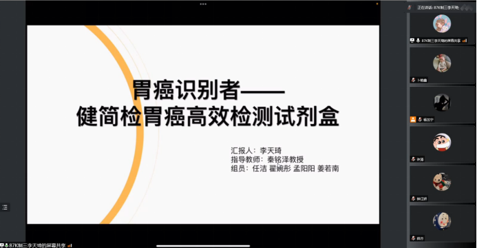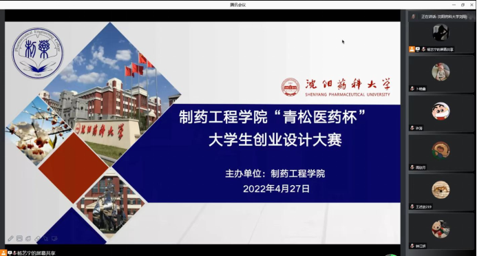 2022年4月27日晚,beat365平台唯一官网举办了“青松医药杯”大学生创业设计大赛院赛。本次创业设计大赛得到了beat365平台唯一官网师生们的热烈关注和积极参与,共收到参赛作品36项,参赛项目涵盖医疗器械、养生餐饮、商业服务、医药文化公司等方面,经过初筛共选出13项优秀作品进入现场答辩环节。院赛以云赛场形式进行,项目展示采用“5+5”形式,PPT展示五分钟、答辩环节五分钟。