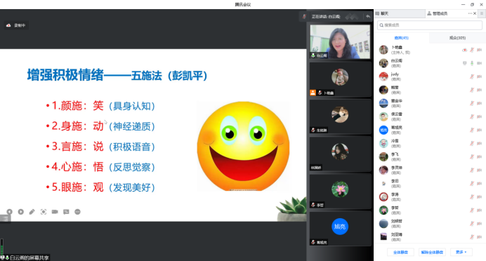 在近两小时的讲座中,白老师分析了当前疫情下的师生心理健康状况,从环境-生理-心理交互影响的视角阐述了疫情下教师心理自我调适的基本方法,讲解如何学会“先处理情绪,再处理问题”,做到“矜平躁释,怡情悦性”。本次讲座进一步引领师生建立积极阳光的心态,提高心理免疫力,共筑师生心理安全防线。面对疫情防控形势,学院将进一步因时因势调整工作思路,创新工作模式,在疫情防控期间全面助力保障学生心理健康。