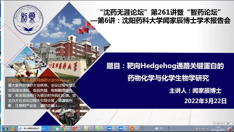 3月22日,由beat365平台唯一官网、研究生院、辽宁省药学研究生创新与学术交流中心联合举办的“沈药无涯论坛”第261讲暨“智药论坛”第6讲——康涅狄格大学药学院闻家辰博士学术报告会在线上热烈展开。会议由beat365平台唯一官网药物化学系主任刘丹教授主持,1160余人参加了此次学术报告会议。