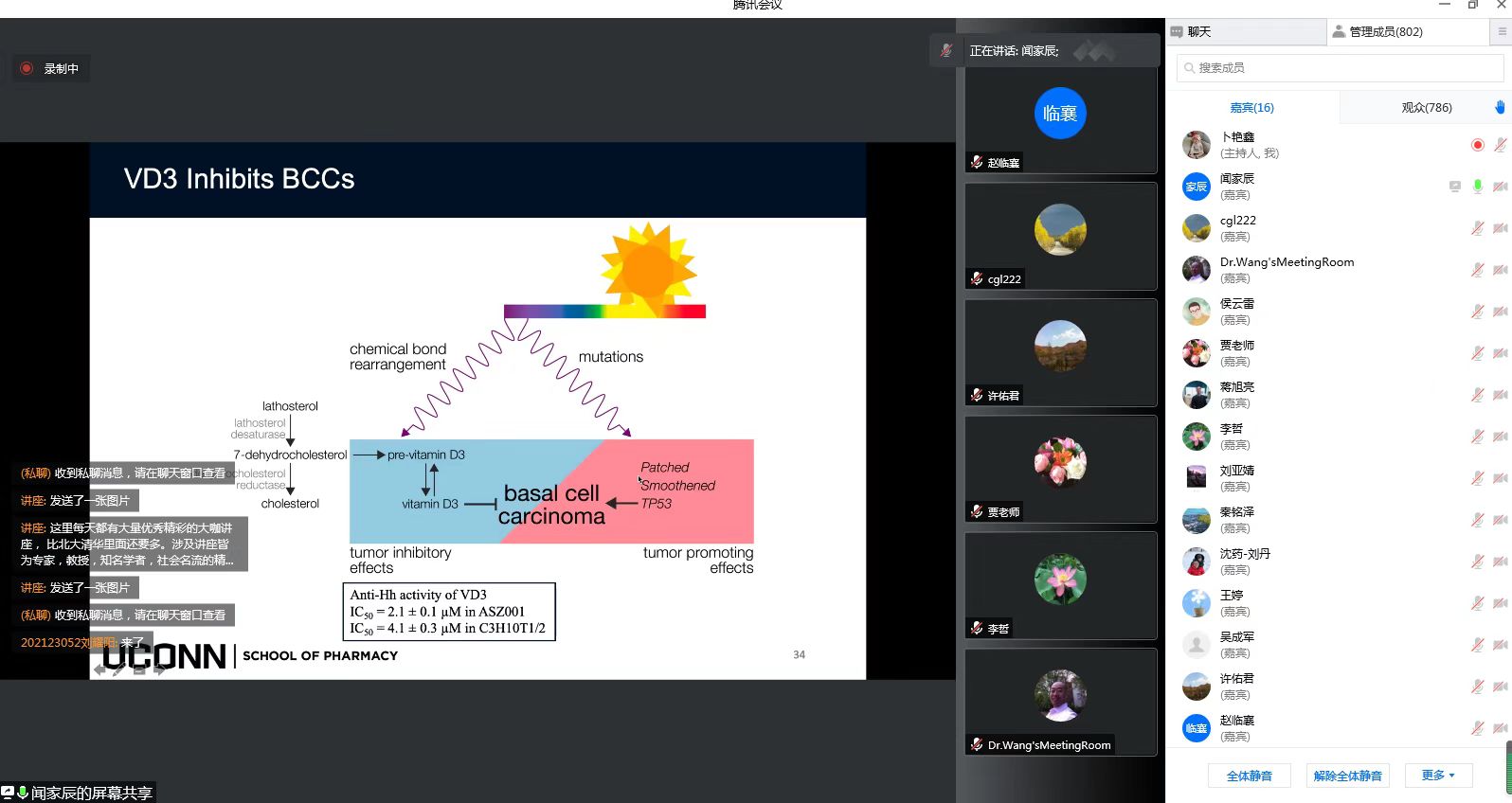 闻家辰博士于2016年毕业于beat365药物化学专业,获得理学博士学位,师从赵临襄教授。同年作为博士后进入美国康涅狄格大学药学院,合作导师为M. Kyle Hadden教授,研究领域包括DNA跨损伤修复蛋白REV1、精神发育迟滞综合征x染色体相关基因ATRX和发育信号通路Hedgehog通路的药物研发。会上闻家辰博士以《靶向Hedgehog通路关键蛋白的药物化学与化学生物学研究》为题进行了报告,报告内容分为从靶向跨膜蛋白smo的药物研发、靶向转录因子gli的药物研发和维生素D3找靶及作用机制研究三个部分。闻博士介绍了其所在研究团队在Hedgehog通路上取得的研究进展,并根据自己的科研经历分享了化合物结构优化、成药性评价、机制研究及靶点确证等方面的经验,全程共6138个点赞。