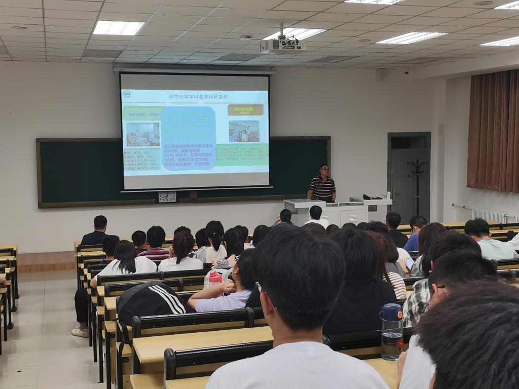 制药工程专业负责人赵临襄、药物化学专业负责人郭春、应用化学专业负责人胡春分别面向三个专业的新生,结合各专业特点,从专业发展状况、教学成果、杰出校友、人才培养目标、专业课程体系、师资队伍建设、科研条件、招生情况与就业前景等多个维度深入解读了各专业的建设成果、人才培养模式和研究的现实意义,并着重强调了学院以生为本的教育教学理念。