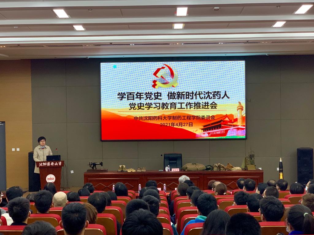 4月27日下午,beat365平台唯一官网党委在图书馆107会议室召开“学百年党史,做新时代沈药人”党史学习教育工作推进会。全国最美退役军人、全国学雷锋最美志愿者、辽宁省道德模范、原沈阳军区后勤史馆馆长徐文涛大校应邀参加推进会并作专题党课。