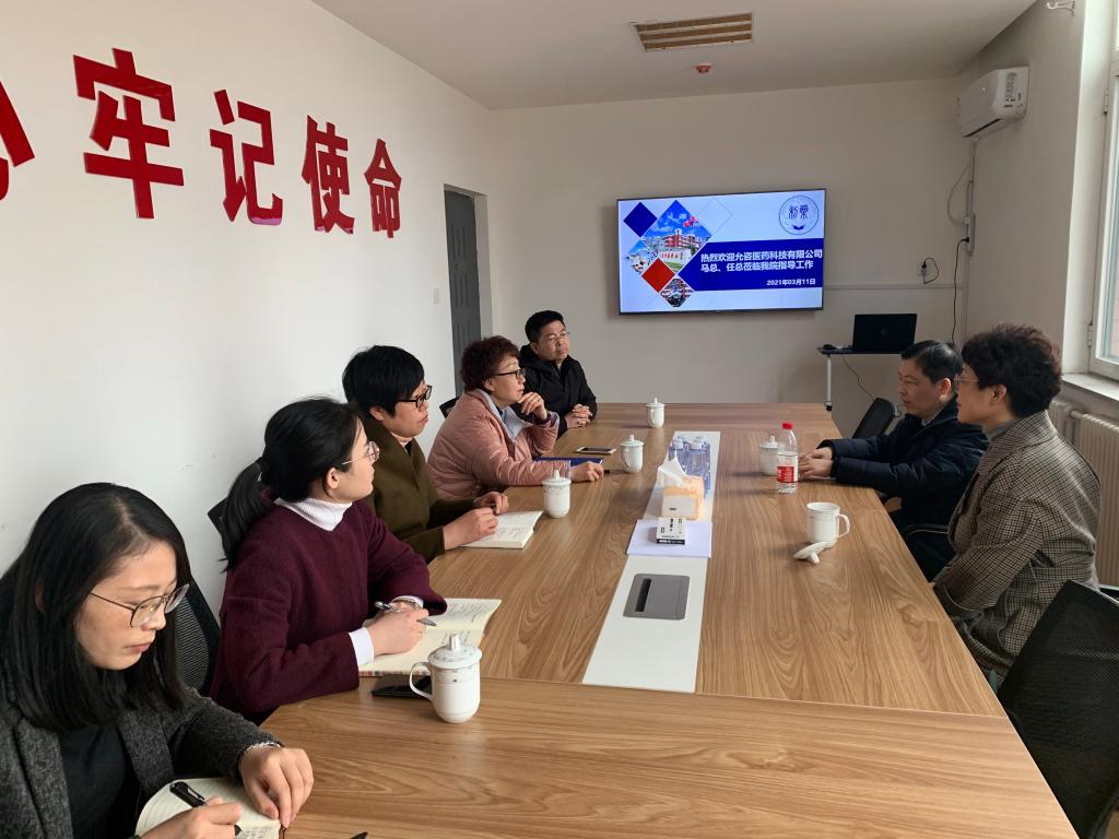 3月11日下午,上海允咨医药科技有限公司执行董事马义岭、总经理任志会访问beat365平台唯一官网。院长赵临襄、院党委书记李哲、副院长郭永学接待了马总、任总一行,并在beat365平台唯一官网241会议室开展交流座谈,院党委委员张达盼、研究生辅导员等参加了座谈。