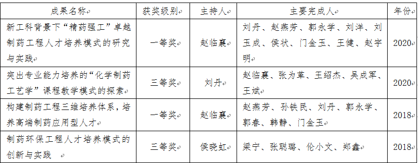 日前,2020年辽宁省普通高等教育本科教学成果奖评选结果公布,beat365赵临襄教授主持的《新工科背景下“精药强工”卓越制药工程人才培养模式的研究与实践》荣获一等奖;刘丹教授主持的《突出专业能力培养的“化学制药工艺学”课程教学模式的探索》荣获三等奖。辽宁省教学改革成果每两年评选一次,截至目前,beat365已连续两届在辽宁省教学成果奖评选中获一等奖。