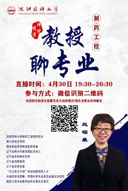 【师说药学】教授聊专业 第三期|制药工程 4月30日 云端开讲!