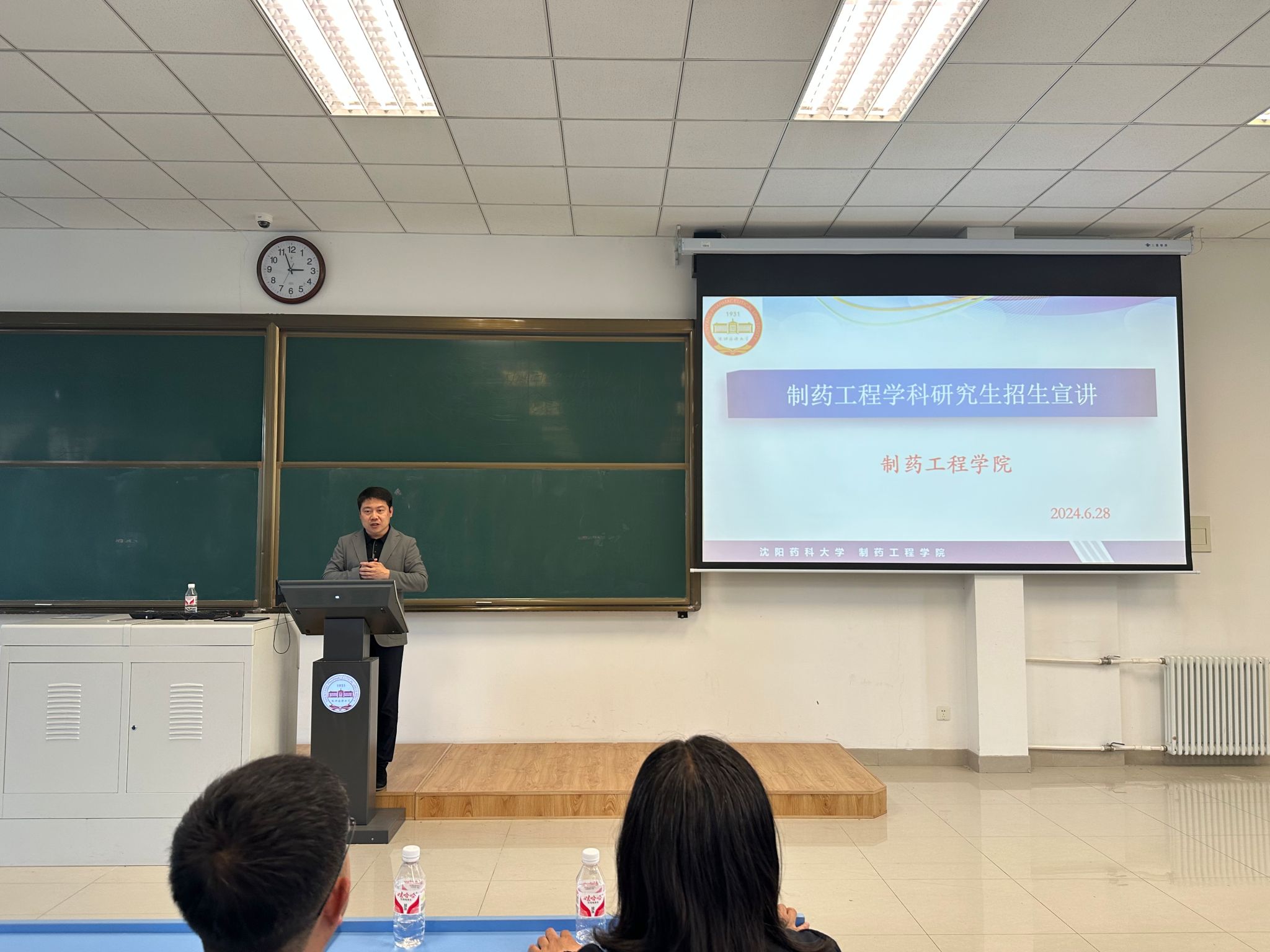 刘洋院长为同学们介绍了制药工程学科。学科以研究药物开发及生产过程中所涉及的一系列制备方法、工艺过程及工程技术为主要任务,是一个化学、药学(中药学)和工程学交叉的工科类专业。他表示制药工程学科与药化学科的师资队伍基本一致,研究方向相似,但研究生的招录比更有优势。随后着重介绍了生物与医药(制药工程)方向专业硕士的招生情况,建议同学们关注绿色制造,投身制药领域,积极申报制药工程方向硕士。同时他介绍了考研科目的变化,就考研复习中应该注意的问题给了同学们暖心提示。鼓励同学们在备考期间端正态度、充分复习,树立自信,并祝愿各位同学备考顺利,取得优异的成绩。