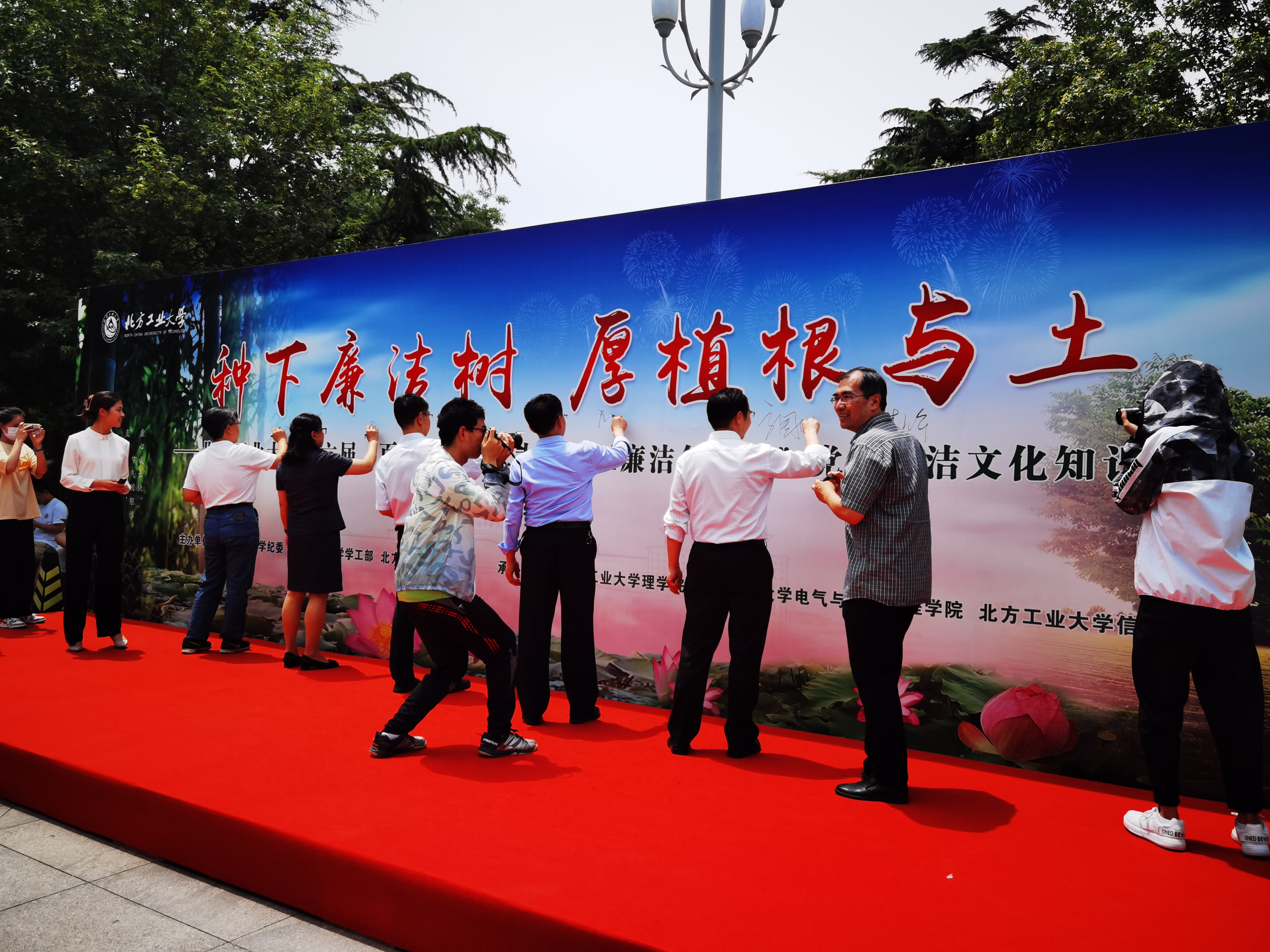 “百年党风沐工大,清正廉洁争先锋”。为传播廉洁文化,强化师生廉洁意识,6月11日中午,由校纪委、学工部、校团委主办,jdb电子中国官方网站、信息学院、电气与控制工程学院联合承办的“种下廉洁树,厚植根与土”——北方工业大学第六届党风廉政文化知识竞赛暨践诺签名仪式在毓秀广场隆重举行。