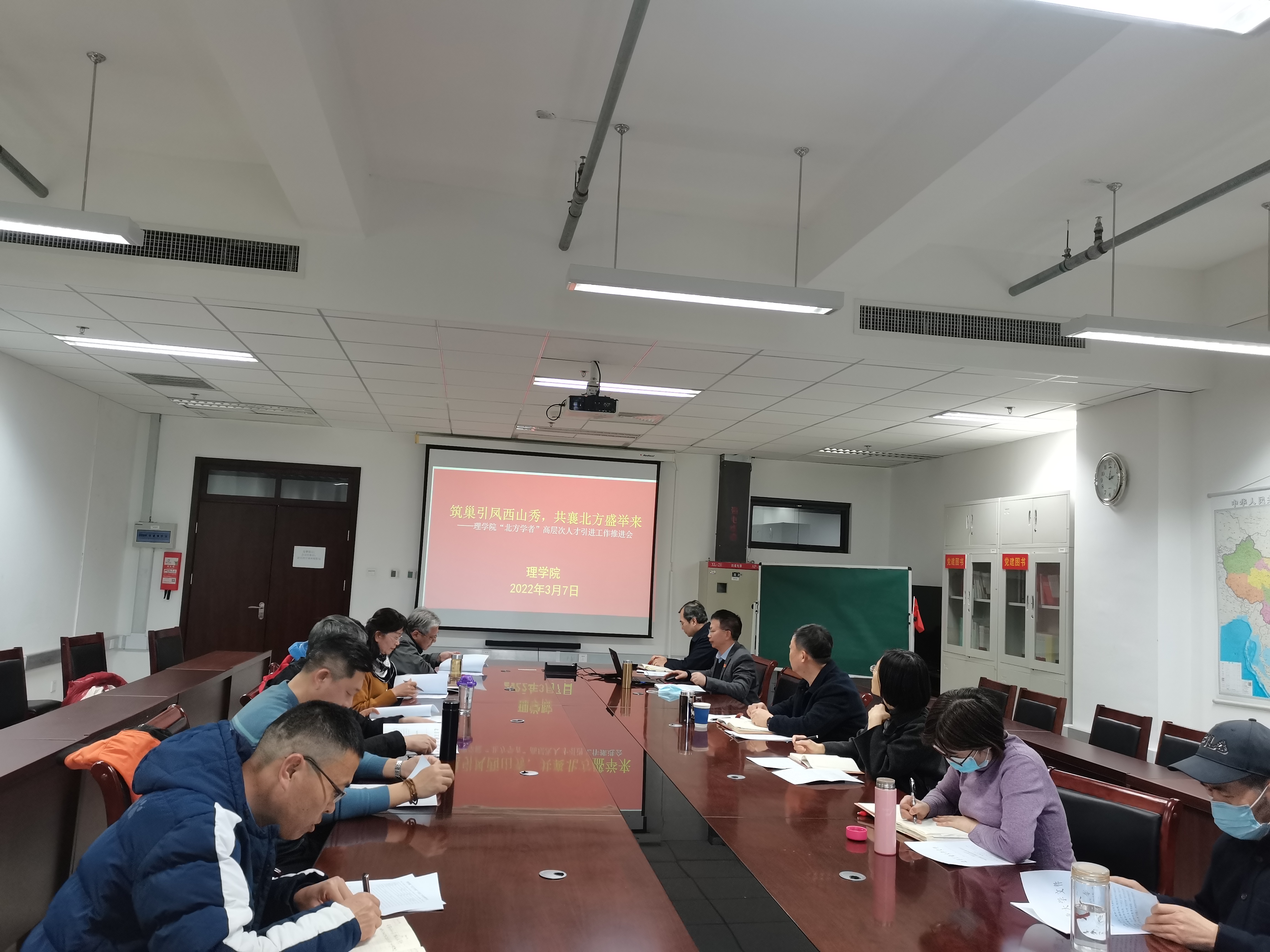 学院党委书记龚维华带领大家共同学习了习近平总书记关于“国家发展靠人才,民族振兴靠人才”的讲话精神,并强调,人才引进工作的开展直接影响着学校、学院工作的开展以及人才梯队的建设,是发展过程中的瓶颈所在,加强人才引进和培育对于学院的长足发展有着重要的意义,不仅可以进一步壮大师资队伍弥补师资不足的缺陷,同时还可以通过引进人才提高整体教学水平增强学科团队的优势。这对于推进学科建设、提高学术水平、促使教师之间进行更加高效的学术交流,帮助高校营造良好的学术竞争环境有很大的帮助。号召学院全体教职工都行动起来,为人才引进和培育工作作出贡献!