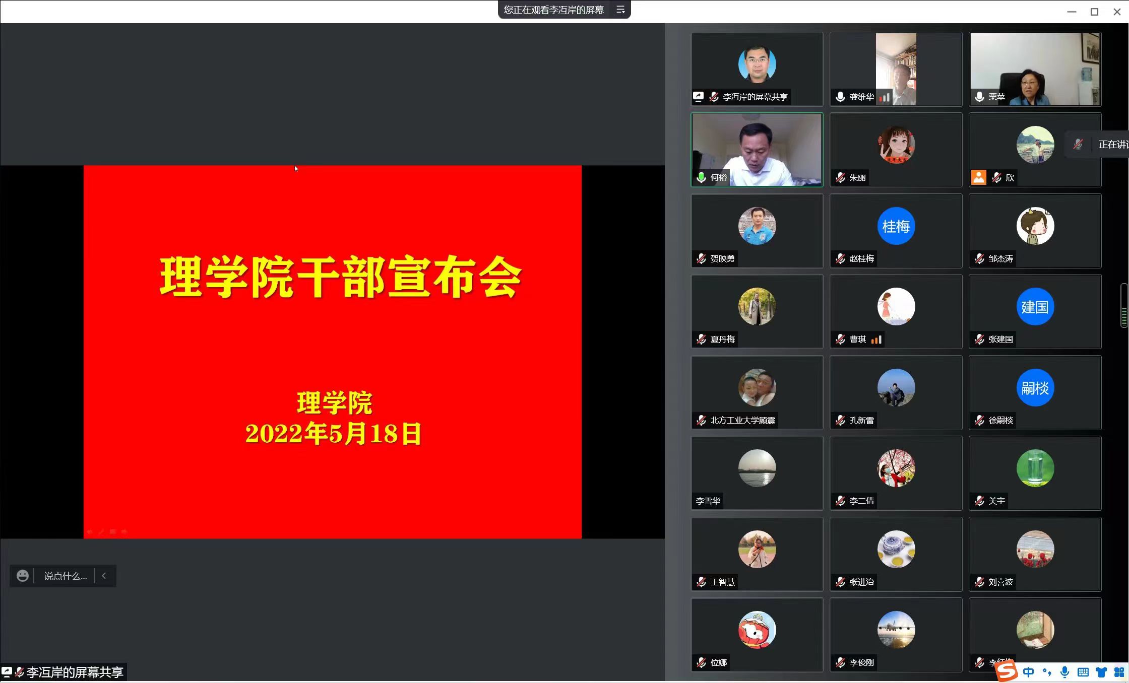 5月18日下午,jdb电子中国官方网站以线上腾讯会议的方式召开领导干部任命大会。校党委常委、副校长栗苹、校党委组织部部长何裕以及学院全体教职工参加会议。会议由学院党委书记龚维华主持。