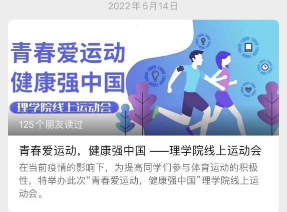 统19-1的张益菲同学说到,在疫情的影响下,我们以居家学习的方式开启了本学期的学习生活。因此,我十分感谢本次线上运动会给予了我与分隔异地的同学们能够一起大汗淋漓的机会。快乐的生活,需要用健康的身体去享受,幸福的感觉,需要用健康的心态去体会,美好的一切源于健康。无论是否在校,我们都需要重视个人的健康问题。最后,我希望能够呼吁更多的同学来加入到热爱运动的集体中,让我们一起互相监督,互相鼓励,在学习之余,保证自己有一个健康的身体,劳逸结合,让学习更佳高效。信19-1班的张喜同学说到,天行健,君子以自强不息;地势坤,君子以厚德载物。身体素质是生活的本钱,通过这次线上打卡的机会,更加促进我体育锻炼的积极性,让我们的身体更加刚强劲健。在疫情肆虑的现如今,有一身健壮的身体素质,是必不可少的。希望大家多多参与到体育锻炼中,少年强,则中国强。统19-1的胡宇姮同学说到,加强体育锻炼,是疫情生活中的重要之重。我们居家锻炼身体,增强体质,提高防疫抵抗力,有好的抵抗力才能抵御病毒!统21-2的侯思嘉同学认为在这活力四射的五月,学校联合各个学院组织的这次运动会帮助我们更好的养成规律运动的好习惯,促进了同学们积极参与体育锻炼。原本我们本应齐聚运动场努力拼搏,加油呐喊,乐享运动魅力。不料被新冠疫情阻挡了脚步。所以本次的线上运动会就显得尤为重要,可以促进我们提高身体素质,共同抵抗疫情。在这次线上运动会中,平板支撑运动十分精彩,这项活动不仅锻炼了我们坚持不懈的决心而且提高了我们的毅力。信21-1的黄馨瑶同学认为疫情期间时间比较充裕,参加这次的平板支撑活动也让我重拾了对运动的热情,并且在比赛中也能发掘自己在挑战不同运动时潜力,是一次非常难得的挑战自己的机会。且适当运动也是一个舒缓压力的方式,在疫情的影响下适当的锻炼能够增强自己的免疫力也能让身心放松,打卡活动是一个很好的激励自己的机会。同时这次活动也使我对运动又有了新的认知和收获,相信我今后也会坚持下去长期锻炼,精益求精的提高自己的运动技能。
