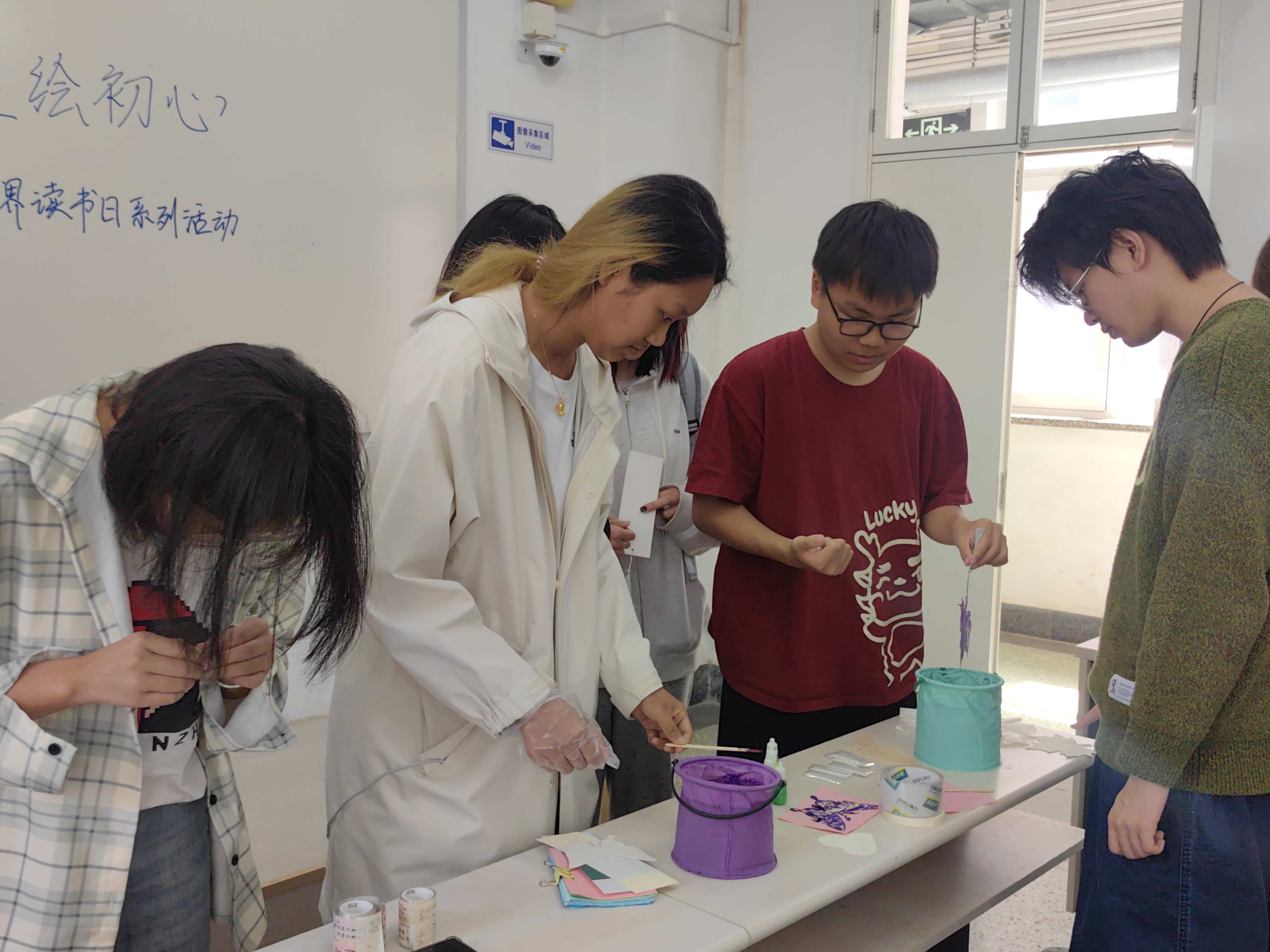 书签与拼接诗制作活动将书签制作与拼接诗巧妙结合,吸引了众多同学参与。同学们充分发挥创意,结合经典诗句和书名,制作出一款款既美观又富有意义的书签。这些书签不仅承载着大家对红色经典的深深敬意与热爱,更激发了文字的力量与艺术的魅力,为春日里的校园增添了一抹明艳色彩。