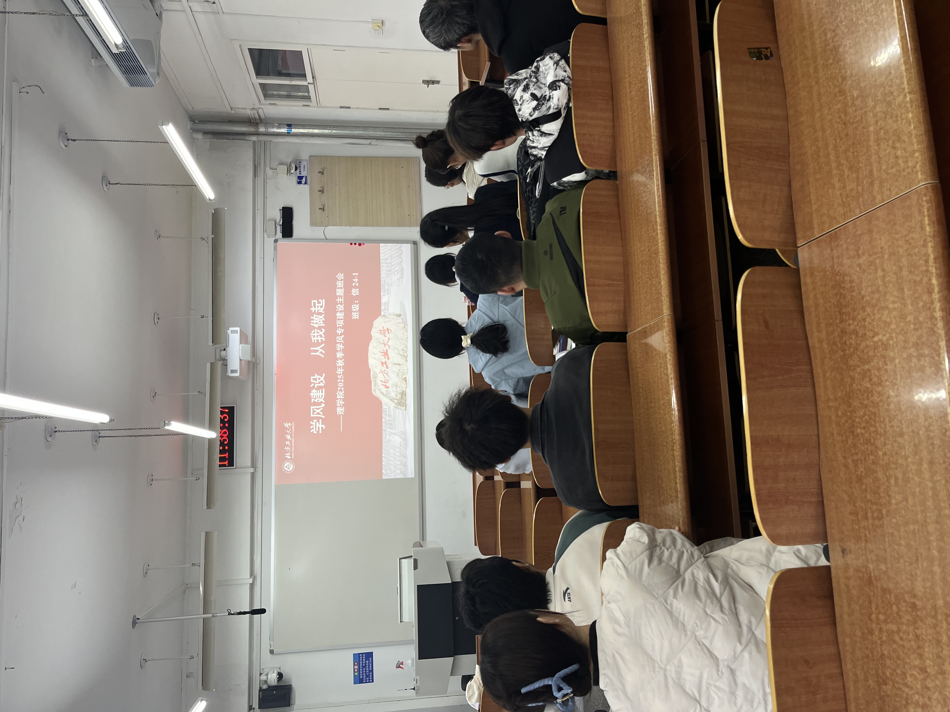 学院充分发挥学生党(团)员及积极分子的示范作用,开展“承诺践诺”活动。学生党员带头遵守课堂纪律,前排就座听课,以实际行动带动班级学习氛围。同时,通过“学霸讲堂”“党员1+1”结对帮扶、学习小组等形式,搭建学业互助平台。针对违反课堂秩序或考试纪律的行为,学院严格执行《北方工业大学学生违纪处分规定》,结合学情分析开展警示教育,强化纪律约束。