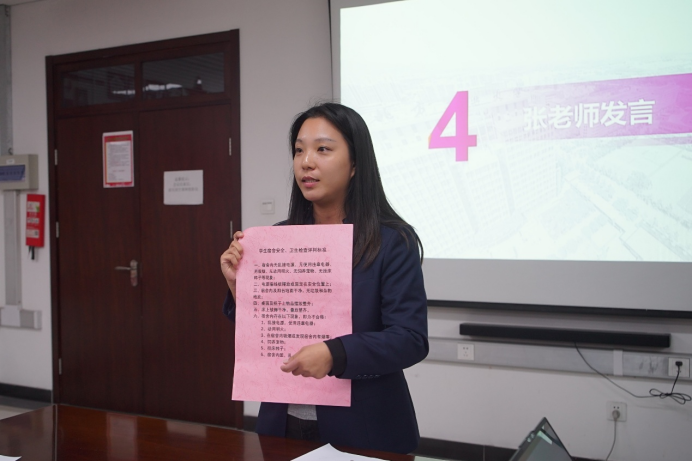 张雪老师以“规范+引导”为核心,系统解读宿舍卫生标准、安全管理细则与行为规范,既明确考核要求,更强调卫生安全与身心健康、集体生活的关联,引导新生树立规则意识与集体责任感,为宿舍文化建设奠定基础。