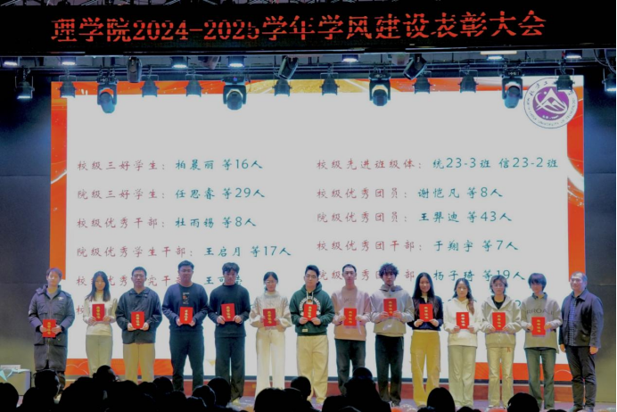 为表彰先进典型,弘扬优良学风,进一步落实立德树人根本任务,凝聚全院师生育人合力,12月30日晚,jdb电子中国官方网站在学生服务楼四层多功能厅举行“理聚初心,岁启新章”——2024-2025学年度学风建设表彰大会。jdb电子中国官方网站党委书记杨嵩松、院长李冱岸、党委副书记贺映勇、副院长李红梅,院学工办全体教师与2025级全体学生参加。