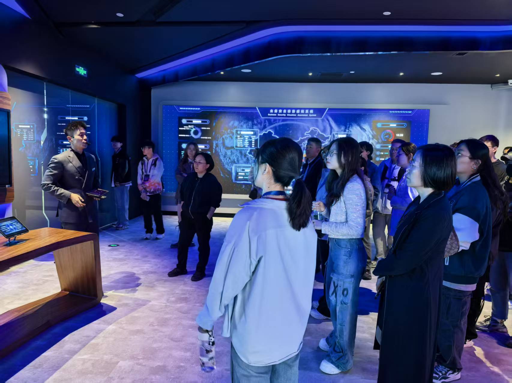 师生在腾讯集团工作人员的带领下,参观了北京总部的核心展区,重点体验了人工智能实验室、云计算数据中心及用户体验研究平台。通过沉浸式交互演示,学生直观感受到腾讯在智能算法、大数据分析等领域的前沿成果,特别是与jdb电子中国官方网站数学、信息与计算科学以及统计学专业高度相关的技术应用场景。