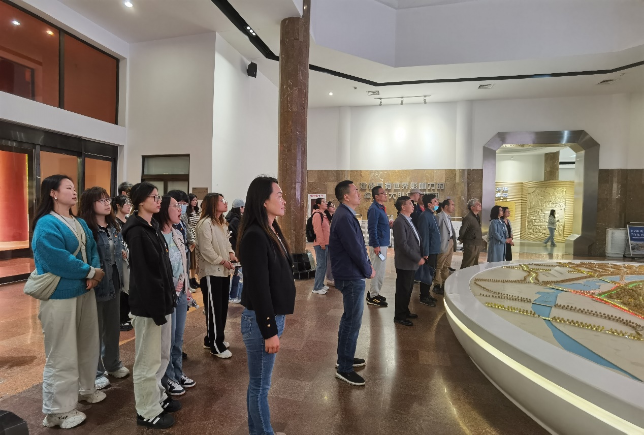 登上石景山,瞻仰了朱德委员长坐像并举行重温入党誓词仪式。在朱德委员长坐像和浮雕墙前,师生党员聆听了朱德委员长先后22次到首钢指导工作的历史,亲身感受到朱德委员长对中国工业发展的殷殷关切。全体师生党员面向鲜红的党旗,高举右手,重温入党誓词,在铮铮有力的宣誓中牢记党员的初心和使命,致力为实现“工业报国、工业兴国、工业强国”的目标贡献青春力量。