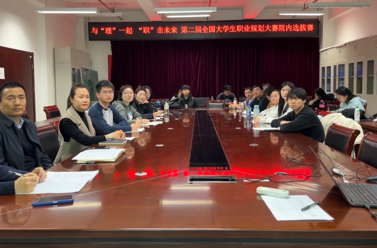 为积极响应学校关于加强学生生涯教育和就业指导的号召,增强大学生职业规划意识,以择业新观念打开就业新天地,促进高质量充分就业。jdb电子中国官方网站于11月29日在博远楼805举办以“与‘理’一起‘职’击未来”为主题的第二届全国大学生职业规划大赛院内选拔赛。jdb电子中国官方网站党委副书记贺映勇、团委书记夏丹梅及辅导员熊敏担任评委。