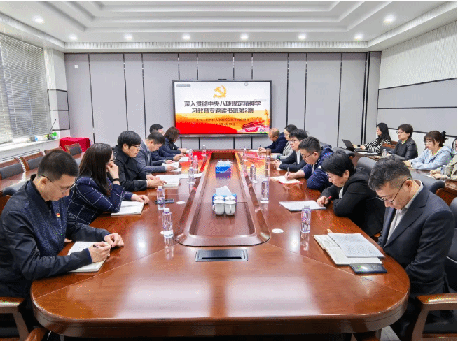 4月29日下午,beat365平台唯一官网举行深入贯彻中央八项规定精神学习教育第2期读书班暨党委理论学习中心组专题学习会。学院党委书记李哲主持会议,院领导班子成员、各党支部书记、专职组织员参会