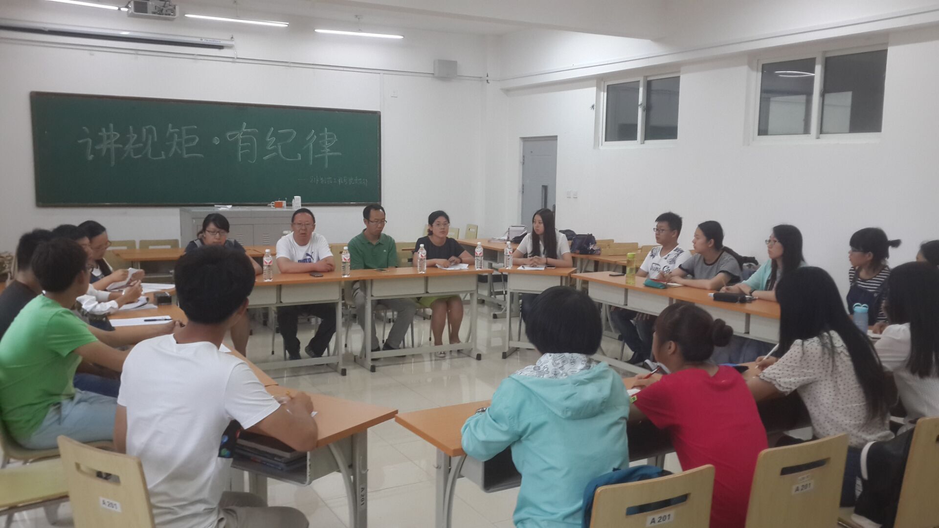 本次讨论分为三个环节。第一环节由专题负责人带领大家从什么是党的规矩以及党规党纪的发展历史等方面学习了“讲规矩、有纪律”的主要内容。第二环节全体同志就自己对“讲规矩、有纪律”的理解、“讲规矩、有纪律”被列入四讲四有所体现出的重要性以及结合自身实际思考应如何做到讲规矩、有纪律三个方面展开积极讨论,现场气氛热烈,并有三名同志主动发言,同大家分享自己对于“讲规矩、有纪律”的感想。最后学院党委书记张伟对此次专题讨论进行总结,重点提到作为当代大学生的我们既然已成为党内一份子,就不能只局限于遵守校规校纪,还应该自觉主动遵守党规党纪,以高标准要求自己,努力做合格党员。
