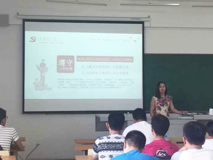 范鑫歆从“讲规矩、有纪律”是护党之要;做到“讲规矩、有纪律”就要严格遵守三大纪律以及如何切实做一名“讲规矩、有纪律”的合格党员三个方面进行详细讲解。并结合真实案例告诫同学们,对法纪应心存敬畏,手握戒尺,以《廉洁自律准则》为道德高线,以《纪律处分条件》为行为底线,不越界线,不破底线,不趟“雷区”,自觉遵守学校的各项规章制度,做守纪律、讲规矩的践行者。