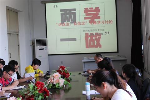 此次,制药80期全体党员召开的“讲政治、有信念”专题学习讨论,进一步加强了党支部全体党员深化领会“两学一做”教育的意义,同时也加强了学生党员“讲政治、有信念”的理念。